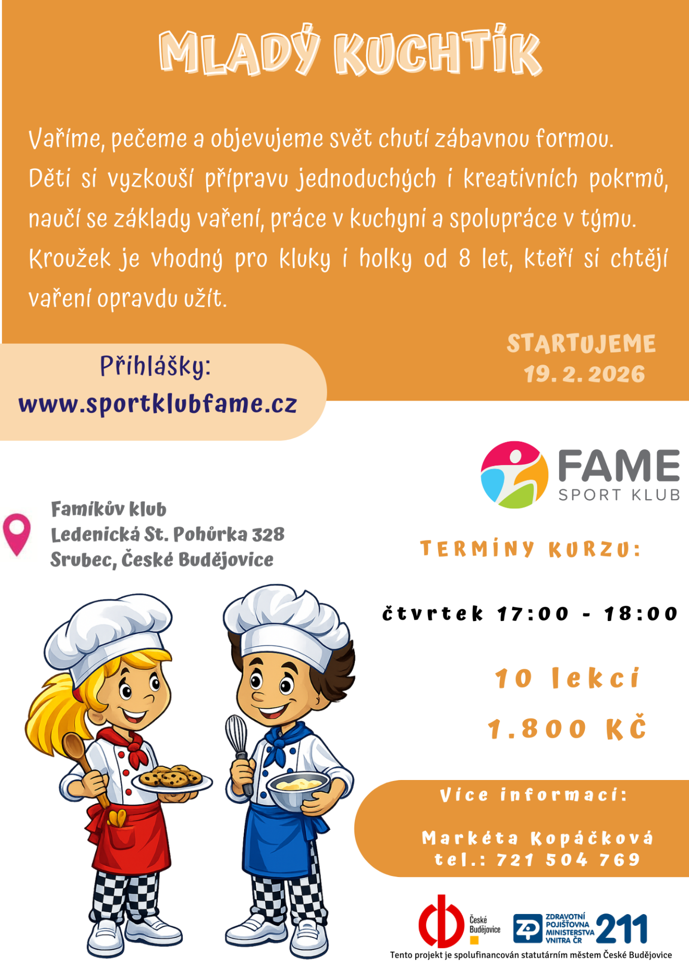 Ať jsi holka nebo kluk, do kuchyně s námi pojď. Zveme vás na kroužek pro děti od 8 let. Naučíme se základy páce v kuchyni a spolupráce v týmu. Připravíme si jednoduché i kreativní pokrmy.