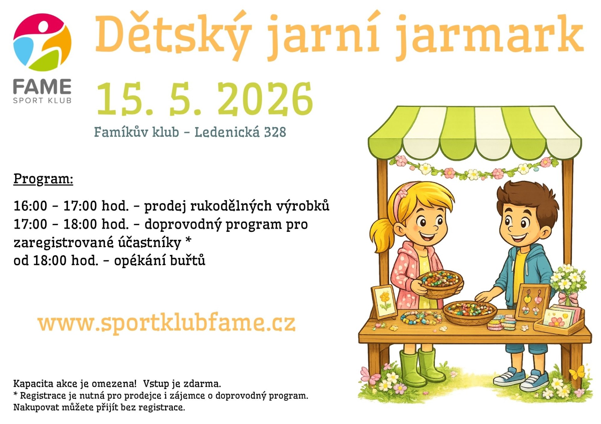 Srdečně vás zveme na Dětský jarní jarmark, kde se setká jarní atmosféra s dětskou kreativitou a rodinnou pohodou.